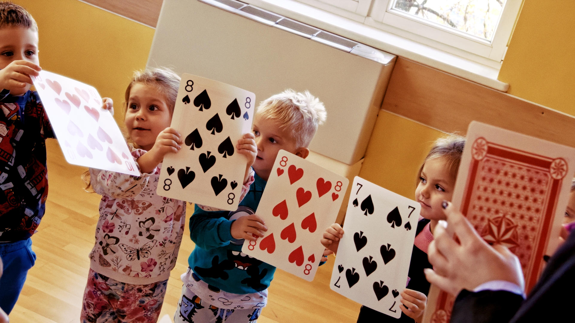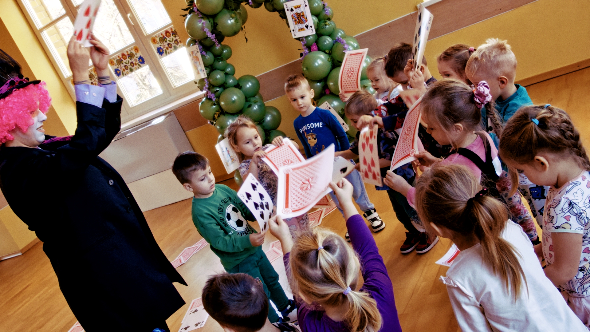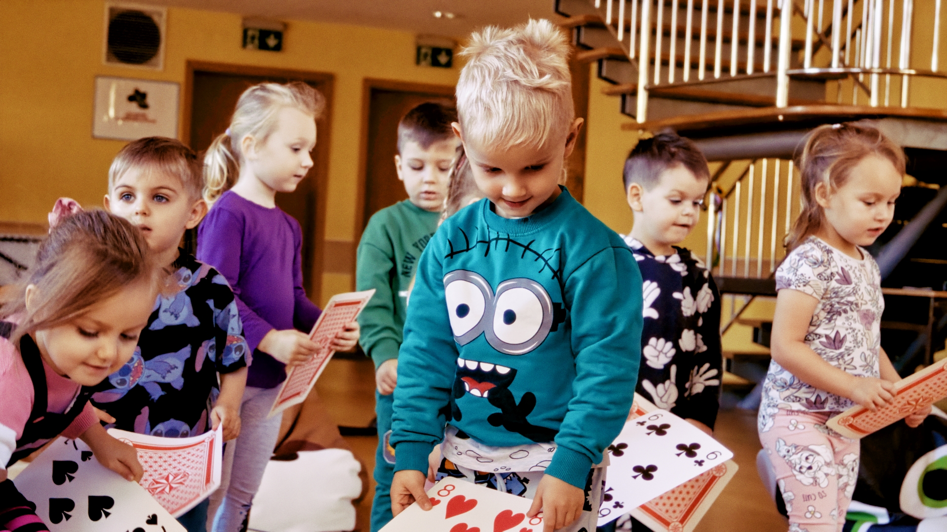 Wysłuchaliśmy historii o Alicji i Króliku, który zniknął w swojej norze! Następnie przyszedł czas na zabawę z wielkimi kartami i pamiątkową foteczkę!