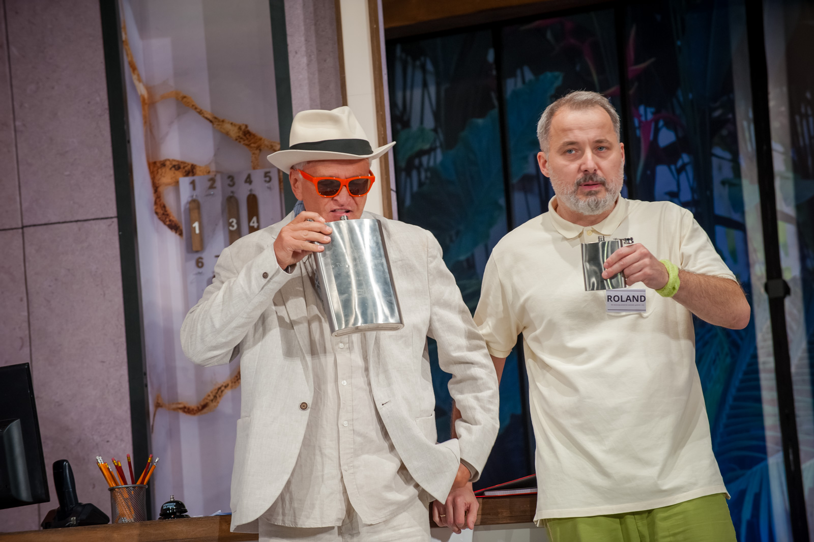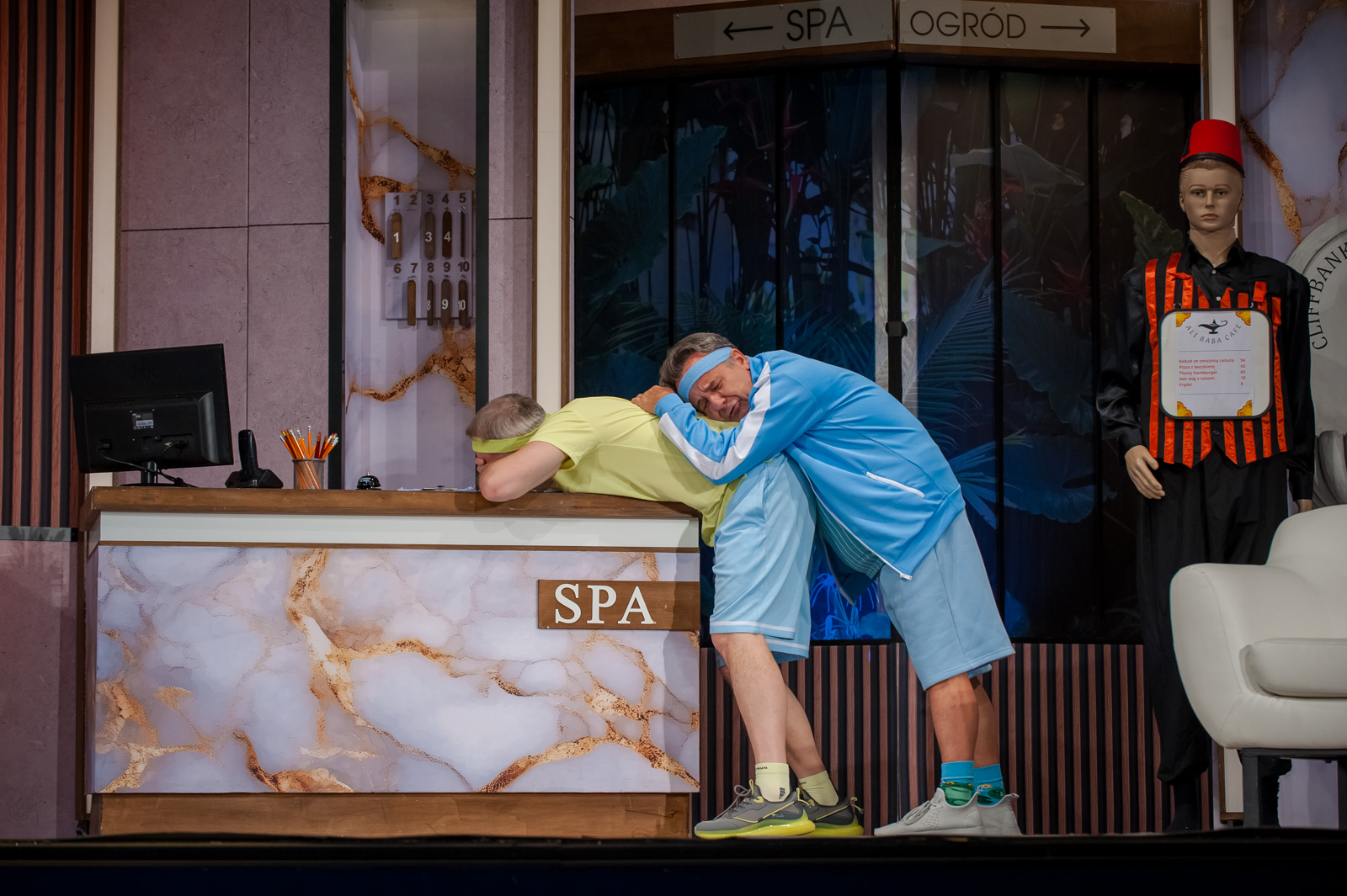 Uwielbiany przez bogatyńską publiczność Wrocławski Teatr Komedia powrócił po roku nieobecności z nowym spektaklem! „Przekręt wSPAniały” autorstwa Dave Freemana, w reżyserii Wojciecha Dąbrowskiego ukazał bujne życie towarzyskie w wielkim SPA, w którym pływa się, tańczy, bawi, lekko głoduje… ale i gorączkowo myśli jak nie zostać zdemaskowanym przez obecną żonę, która wyprawiła już twój pogrzeb! Spektakl dostarczył widzom mnóstwo humoru, zwrotów akcji i wybuchów serii śmiechów i oklasków. Dziękujemy wszystkim za obecność i zapraszamy na kolejne spektakle komediowe do Bogatyńskiego Ośrodka Kultury! Wystąpili: Julia: Dorota Łukasiewicz-Kwietniewska, Vanessa: Marzena Oberkorn, Olivia: Anna Bajer, Campbell: Anna Makowska-Kowalczyk, Roland: Rafał Kwietniewski, Sidney: Wojciech Dąbrowski, Hooper: Krzysztof Grębski. Reżyseria: Wojciech Dąbrowski, Przekład: Elżbieta Woźniak, Kostiumy: Beata Tomczyk, Muzyka: Bartosz Pernal & AI, Scenografia: Wojciech Stefaniak.