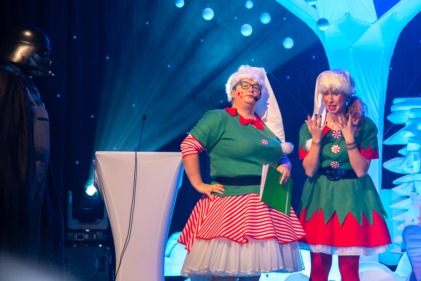 W spektaklu „Kosmiczne Mikołajki” udział wzięli: W roli Kena - Wojciech Dobrołowicz, Asystentka Grażynka – Edyta Małkiewicz, Maryla Rodowicz – Bożena Mazowiecka, Tik Tokerka – Magdalena Kutz, Kosmici – Dorota Bojakowska, Marta Bodziony, Łukasz Roszkowski, Elfy – Ewelina Gabara-Walczak, Monika Nawrot, Jolanta Medycka, Janusz Vader – Krystian Bajsarowicz, Barbie – Monika Nawrot, Narrator Aniołek – Mariola Danielewska, Grinch – Marcin Woroniecki, Święty Mikołaj – Albert Bystrykowski. Scenariusz i reżyseria: Marcin Woroniecki.