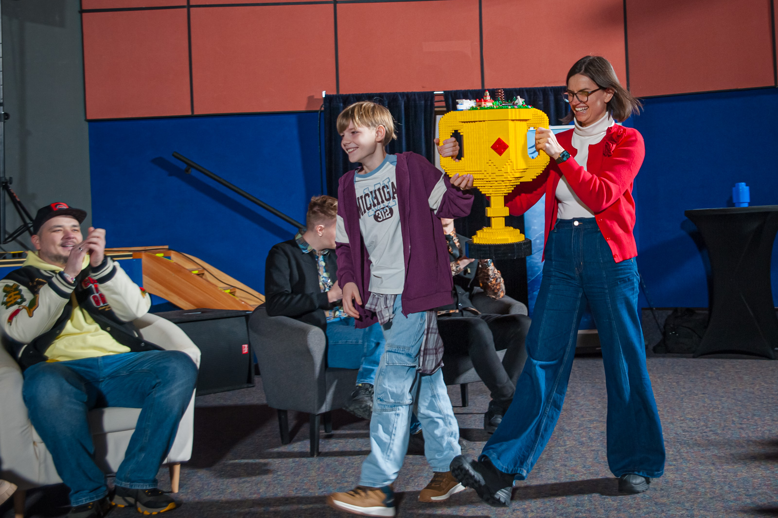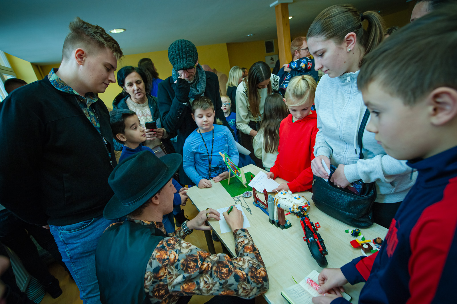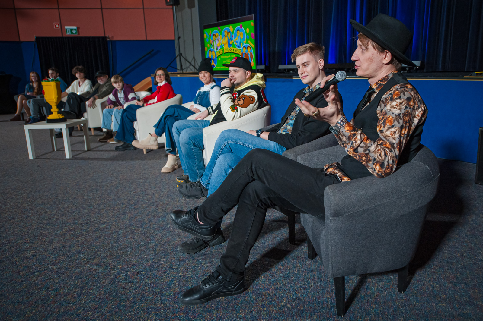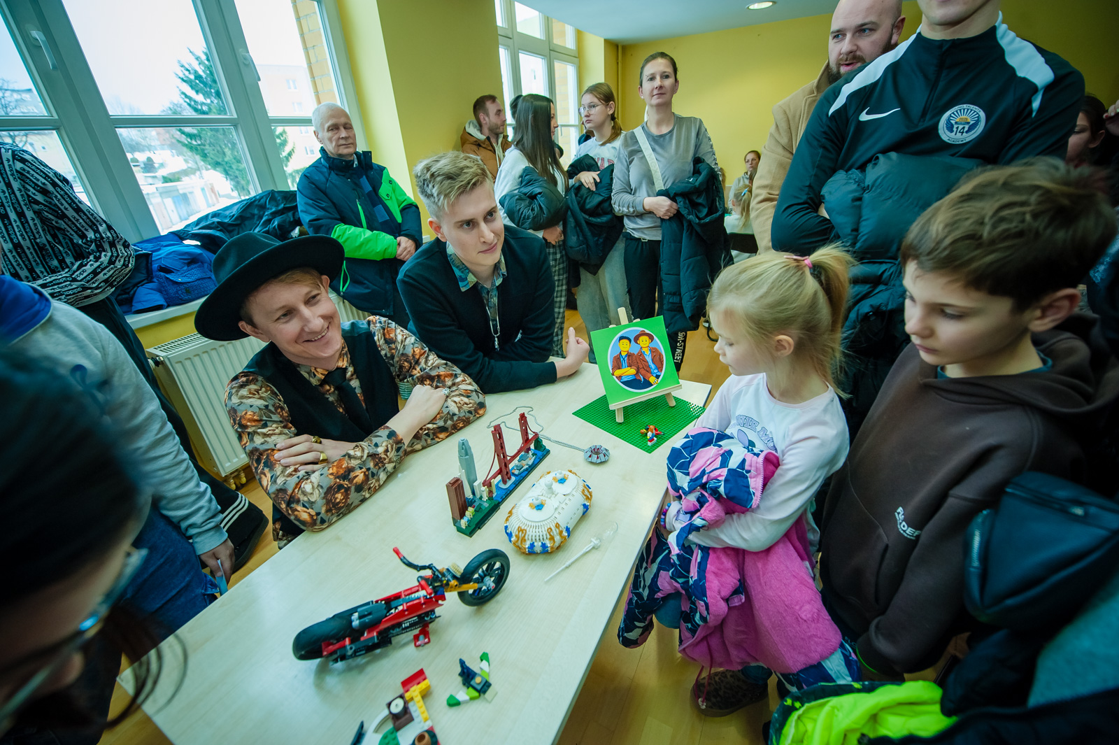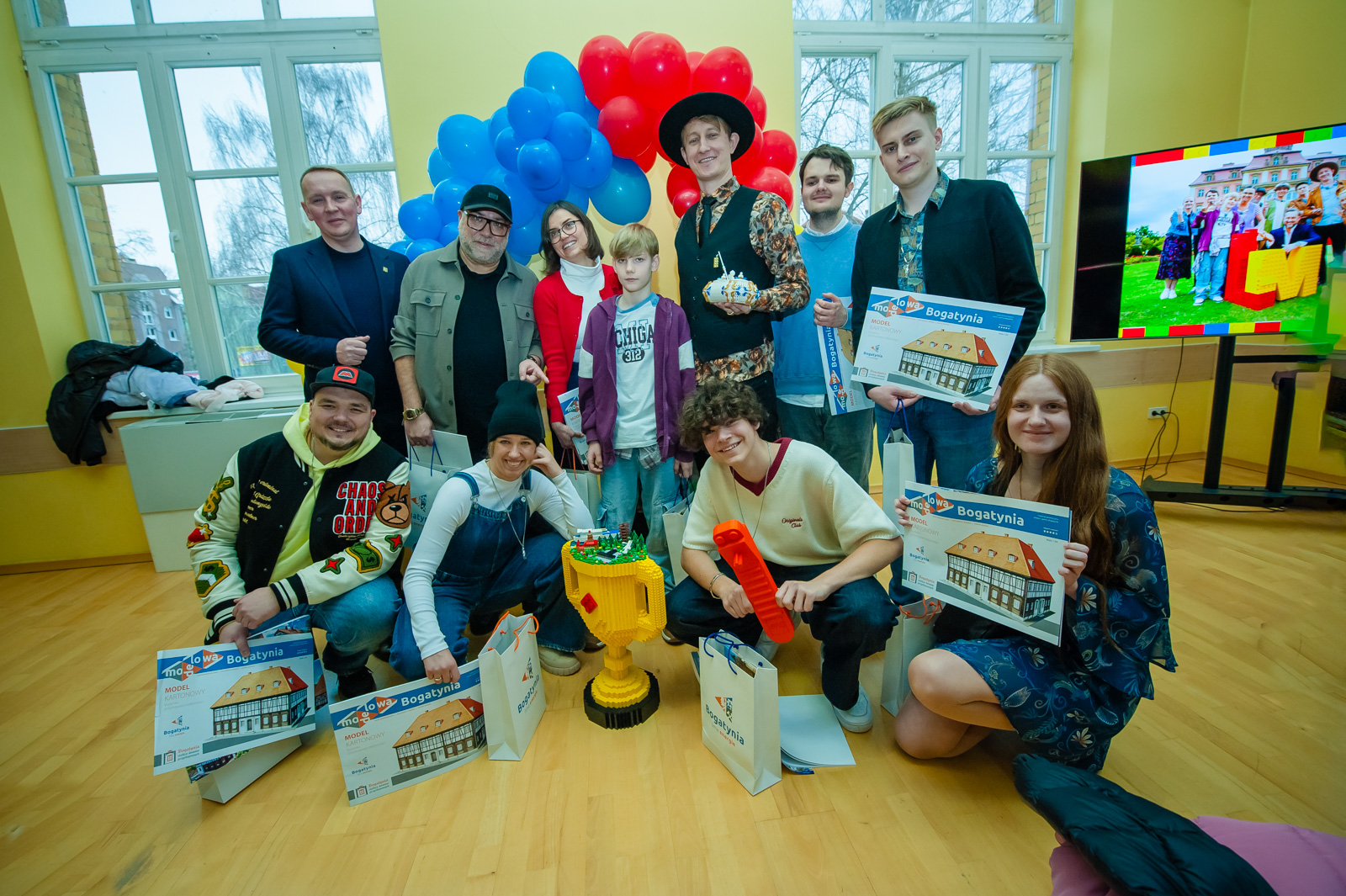 Nowy Rok otworzyliśmy z przytupem! Cała ekipa najnowszego sezonu programu telewizyjnego „LEGO Masters. Kierunek Polska” zawitała do Bogatyńskiego Ośrodka Kultury. Jako pierwsi w kraju zorganizowaliśmy tego typu klockowe wydarzenie dla dzieci i dorosłych na którym obecne były wszystkie pary show czyli: Ewelina i Kamil, Adam i Mateusz, Jason i Tomek, Zuzia i Michał oraz Zuza i Adaś. Cieszymy się ponieważ sala widowiskowa a następnie sala taneczna BOK dosłownie pękały w szwach! Nasi wyjątkowi goście najpierw odpowiadali na pytania przygotowane przez Dyrektora BOK Marcina Woronieckiego oraz zgromadzoną publiczność. Następnie wzorem telewizyjnego show odbył się konkurs na czas (w sumie 7 minut), podczas którego nasze gwiazdy składały na szybko oryginalne konstrukcje ze specjalnie przygotowanych zestawów losowych klocków. Później wszyscy przenieśliśmy się do sali tanecznej gdzie przygotowane były stanowiska wszystkich uczestników z ich klockowymi zestawami gdzie fani mogli zamienić kilka słów, przybić piątki oraz porobić niezapomniane wspólne zdjęcia. Dziękujemy wszystkim za super zabawę i niesamowitą energię, która dosłownie buzowała w całym Bogatyńskim Ośrodku Kultury. Ze naszej strony zapewniamy że klockowa ekipa BOK Masters pojawi się u nas jeszcze w tym roku!