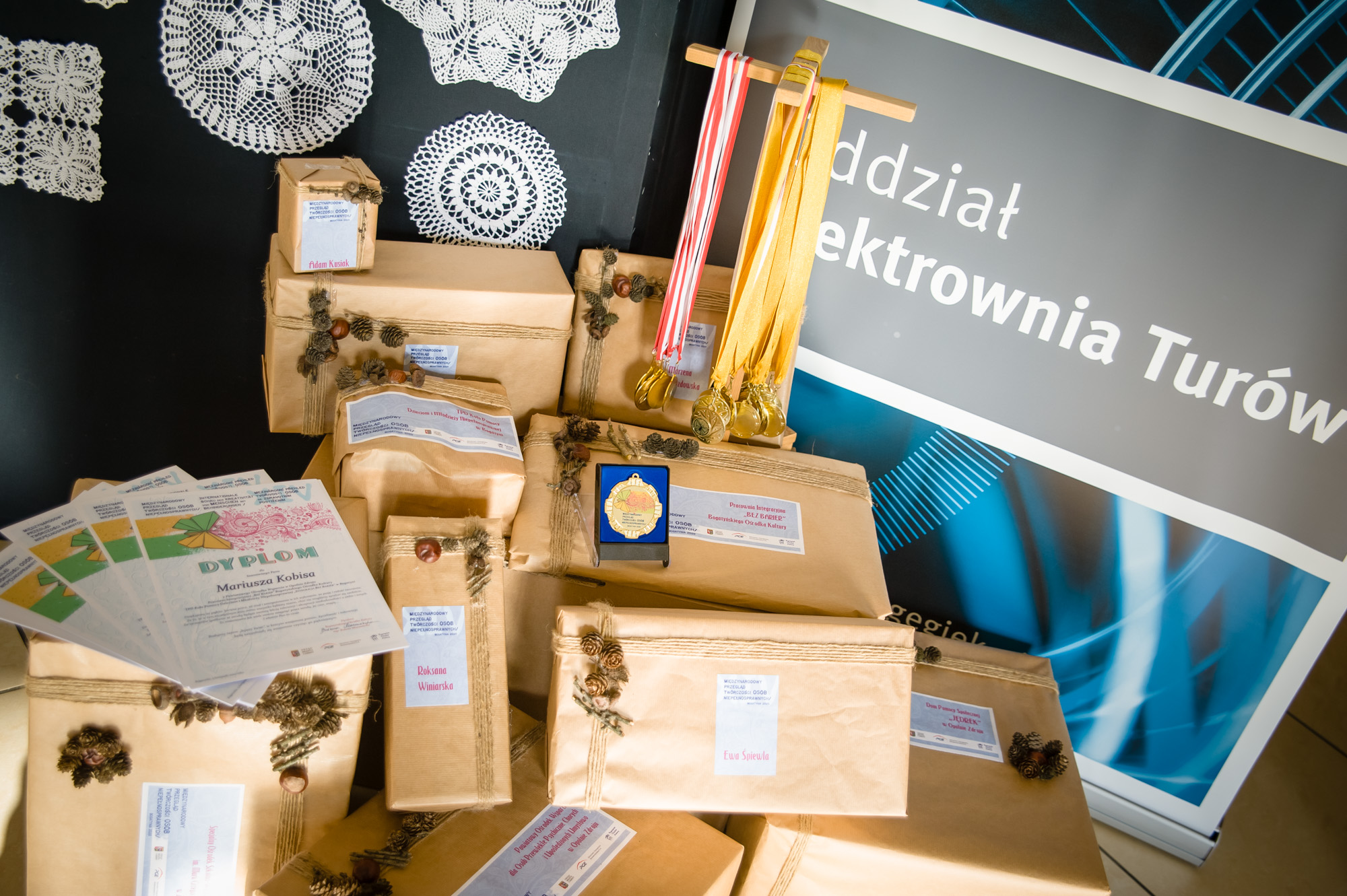 Wystawę otworzył występ muzyczny podopiecznego pracowni integracyjnej „Bez Barier” Michała Gietki, który przy akompaniamencie instruktora muzyki Krzysztofa Wermińskiego wykonał utwór amerykańskiego zespołu Stone Sour pt.: „Bother”. Następnie głos zabrała dyrektor Bogatyńskiego Ośrodka Kultury Bożena Mazowiecka witając wszystkich zaproszonych gości, w tym reprezentującego Urząd Miasta i Gminy Bogatynia p.o. Burmistrza Wojciecha Dobrołowicza. Po oficjalnym przywitaniu goście wernisażu podziwiali piękne prace wykonywane różnorodnymi technikami artystycznymi: rękodzieło, prace plastyczne, ceramiczne, fotografie. Przygotowany został również mały poczęstunek dla zgromadzonych miłośników sztuki. Na koniec p. o. Burmistrza Wojciech Dobrołowicz wręczył obecnym artystom dyplomy oraz drobne upominki. Serdeczne podziękowania kierujemy do wszystkich, którzy zdecydowali się przyjść i uczestniczyć w wernisażu w tak trudnym dla nas wszystkich czasie. Ze względu na wprowadzone przez rząd obostrzenia wystawę prac wykonanych przez osoby z niepełnosprawnościami będzie można oglądać od 28 grudnia b. r. w godzinach pracy Bogatyńskiego Ośrodka Kultury. Wstęp wolny.