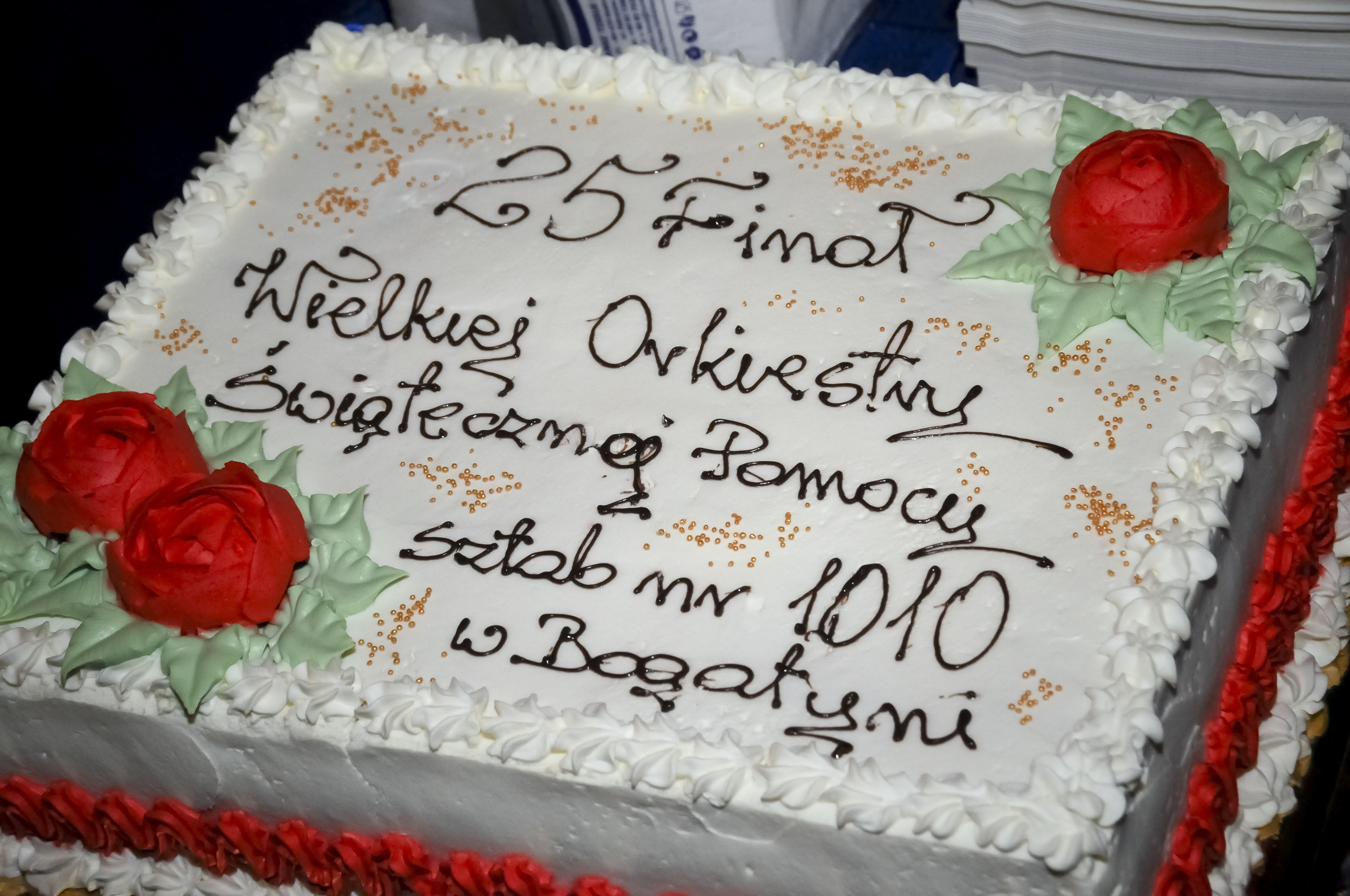 - pyszny i cudny tort 25. Finału WOŚP ufundowany dla naszego Sztabu nr 1010 w Bogatyni ufundowany przez Mieczysława i Jacka Nitarskich Cukiernictwo-Piekarnictwo „DUET” w Pieńsku (wylicytowano za kwotę 650,00 zł)