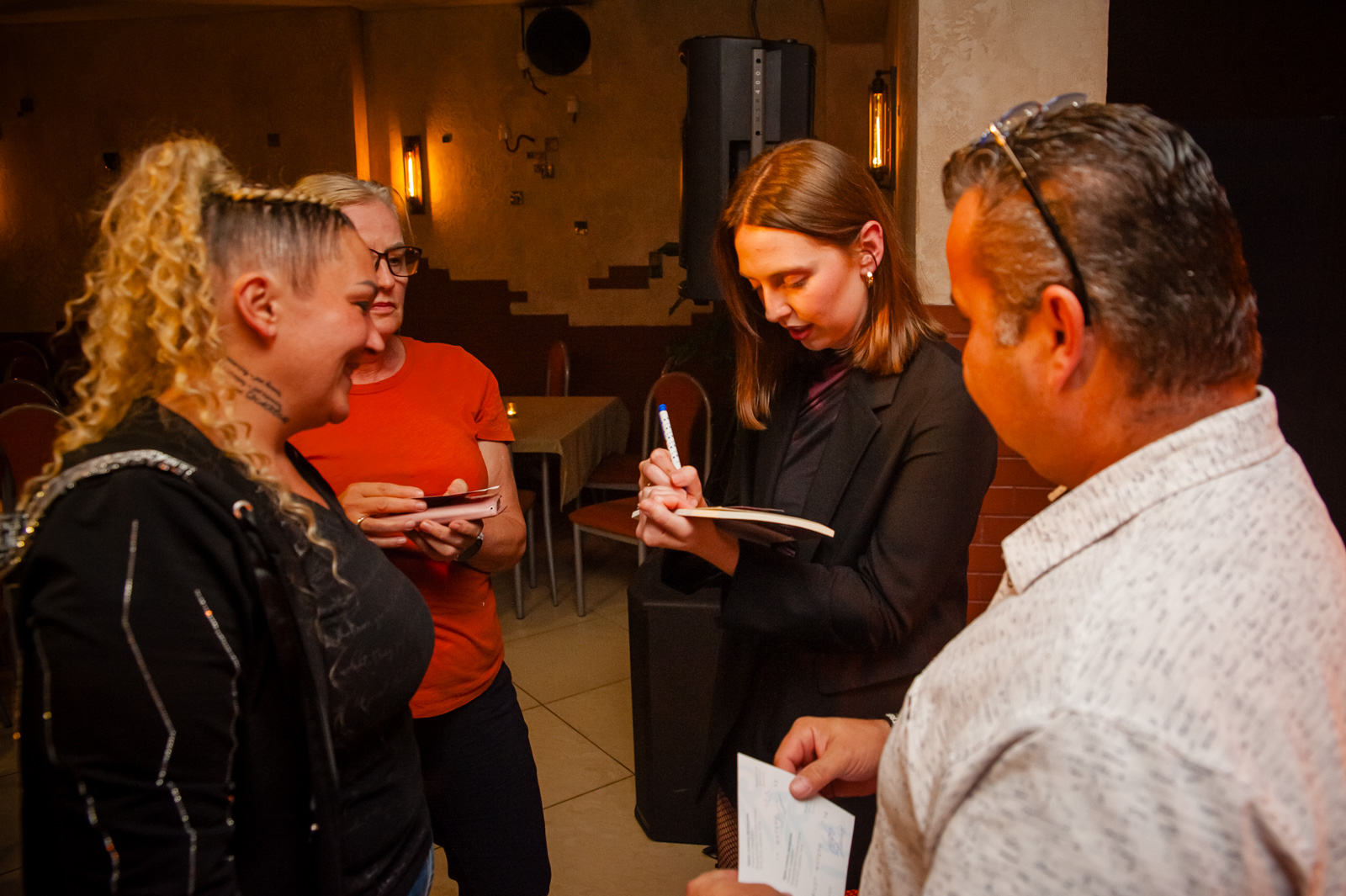 Agata to pochodzą z Bogatyni artystka młodego pokolenia, obecnie mieszkająca we Wrocławiu. Od najmłodszych lat związana z muzyką i śpiewem, wiele lat występująca w młodzieżowym zespole wokalnym „Yamayka”. W życiu postawiła na śpiew oraz aktorstwo i w tych dziedzinach wciąż się rozwija odnosząc coraz większe sukcesy. W Kopalni Dźwięków zaprezentowała się w duecie z gitarzystą Piotrem Sobotą z którym wykonała znane i lubiane polskie i zagraniczne piosenki w jazzowo-soulowych aranżacjach. Jolanta Pieczara z Biura Organizacji Imprez podziękowała artystce za przepiękny spektakl muzyczny przy wielkim aplauzie zgromadzonej publiczności. Właśnie dla ludzi stąd dopiero zaczynających jak i mających już muzyczne osiągnięcia jest nasza kameralna scena w Kopalni Dźwięków. Jeszcze raz serdecznie dziękujemy wszystkim za obecność i zapraszamy na kolejny koncert już za miesiąc!