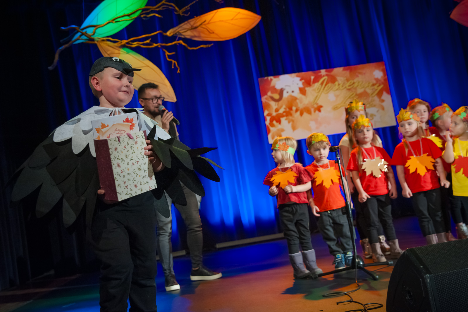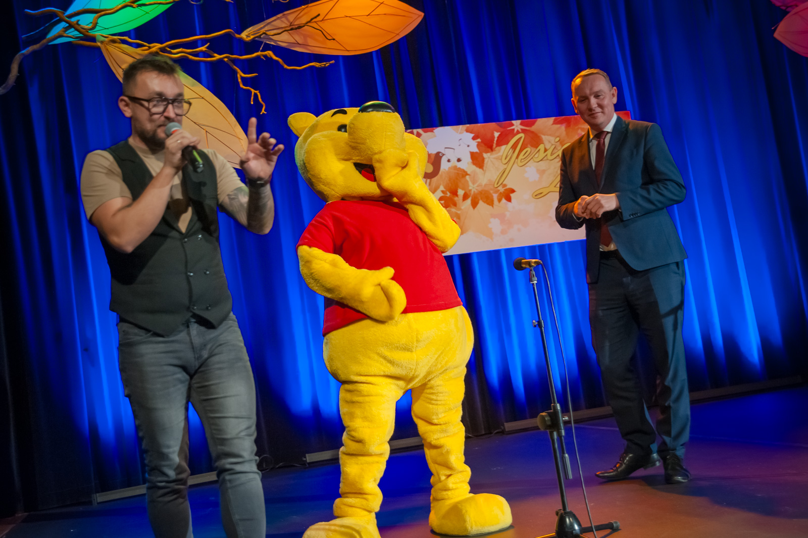 Jesienny Liść osiągnął właśnie pełnoletniość! Jak co roku cieszy się wielką popularnością wśród najmłodszych mieszkańców naszego miasta. Nie inaczej było tym razem. Zobaczyliśmy 8 wspaniałych występów ze szkół podstawowych, przedszkoli oraz oddziałów przedszkolnych z terenu Miasta i Gminy Bogatynia. Na scenie niespodziewanie pojawiła się najpierw Piratka Ewelina, która jak się okazało za szybko dopłynęła do Bogatyni, bo potrzebna będzie dopiero 20 listopada na wielkim muzyczno-maskotkowym wydarzeniu. Kolejnym gościem był Kubuś Puchatek, który na kilka chwil zastąpił w roli konferansjera dyrektora BOK Marcina Woronieckiego. Każde wejście młodych artystów nagradzane było owacjami publiczności, dyplomami i słodkimi upominkami. Dzieci pokazały na scenie drzemiące w nich nieprzeciętne talenty. Podziękowania kierujemy do Pań nauczycielek oraz opiekunek, które przygotowały najmłodszych do występów. Na imprezie obecny był Burmistrz Miasta i Gminy Bogatynia Wojciech Dobrołowicz. Dziękujemy wszystkim za obecność i zapraszamy za rok na kolejną edycję „Jesiennego Liścia” do Bogatyńskiego Ośrodka Kultury.