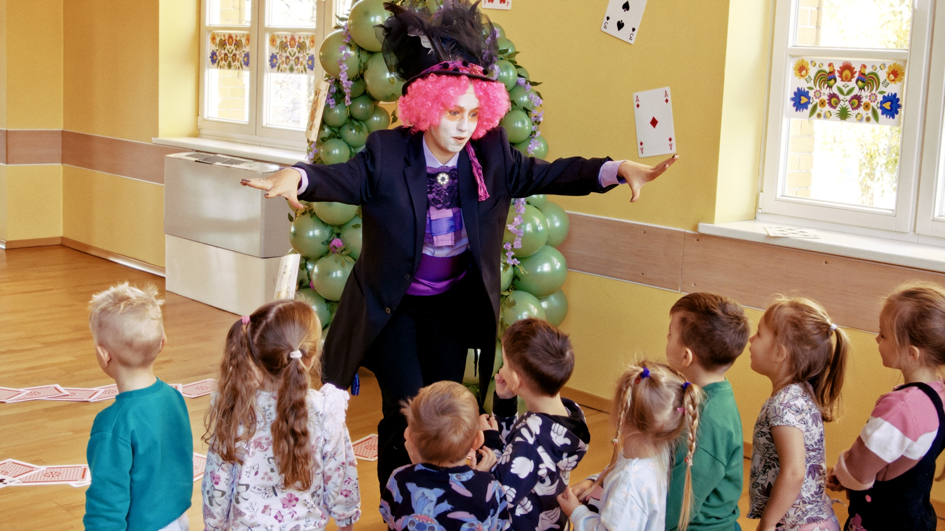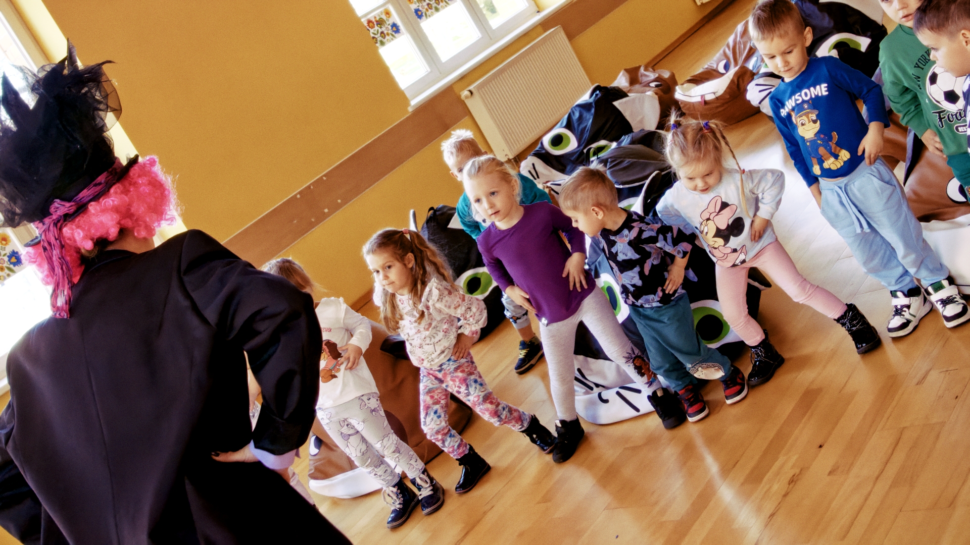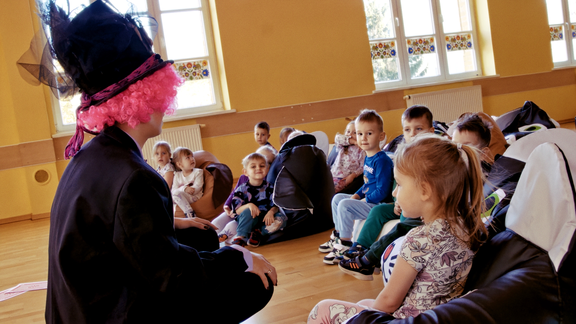 Wysłuchaliśmy historii o Alicji i Króliku, który zniknął w swojej norze! Następnie przyszedł czas na zabawę z wielkimi kartami i pamiątkową foteczkę!