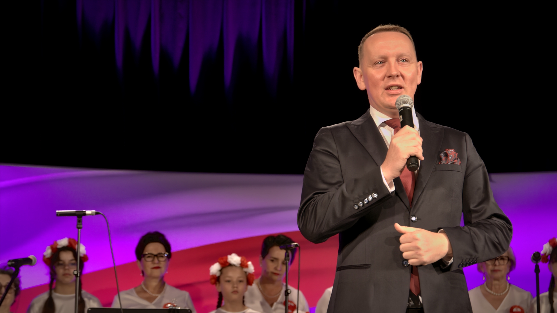 Na finał gminnych obchodów Święta Niepodległości na sali widowiskowej odbył się koncert patriotyczny przygotowany przez Zespół Wokalny „Amazonki” oraz Chór Szkoły Podstawowej im. Św. Jadwigi Śląskiej w Działoszynie. Wysłuchaliśmy pięknego programu patriotycznego połączonego z krótką lekcją historii, którą pomiędzy pieśniami przedstawiała Dorota Bojakowska. Był to piękny międzypokoleniowy koncert pokazujący, że Ojczyzna i Biało Czerwone barwy są w nas wszystkich, niezależnie od wieku. Uroczystość przyciągnęła ponad 200 widzów, którzy po patriotycznej uczcie muzycznej zostali poczęstowani tradycyjnymi rogalami świętomarcińskimi. Koncert odbył się pod Patronatem Honorowym Burmistrza Miasta i Gminy Bogatynia Wojciecha Dobrołowicza.