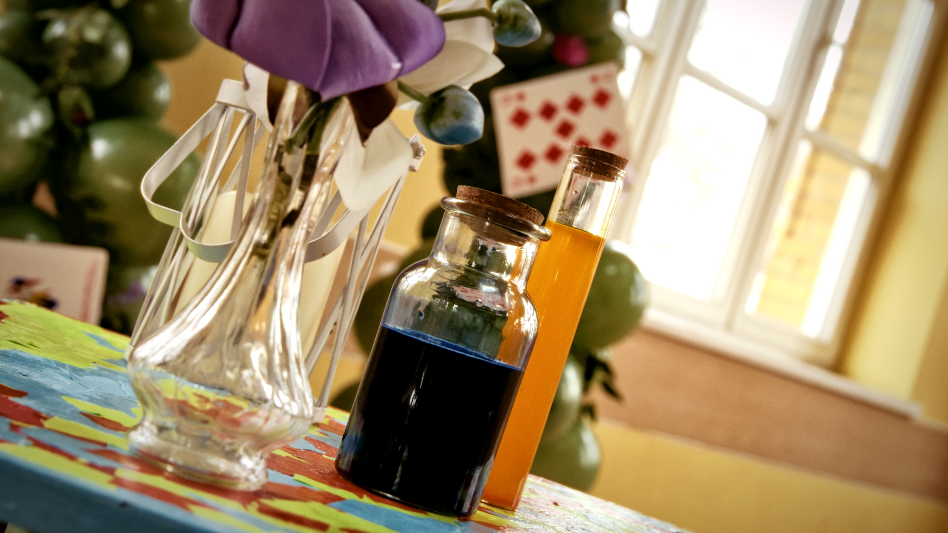 Alicja opowiedziała przygodę z miksturą powiększającą, dzięki której stała się tak wieeelka, że nie mogła zmieścić się w pokoju i przejść przez drzwi. Na szczęście odnalazła kamienie, które zamieniły się w ciasteczka, dzięki którym wróciła do normalnych rozmiarów.