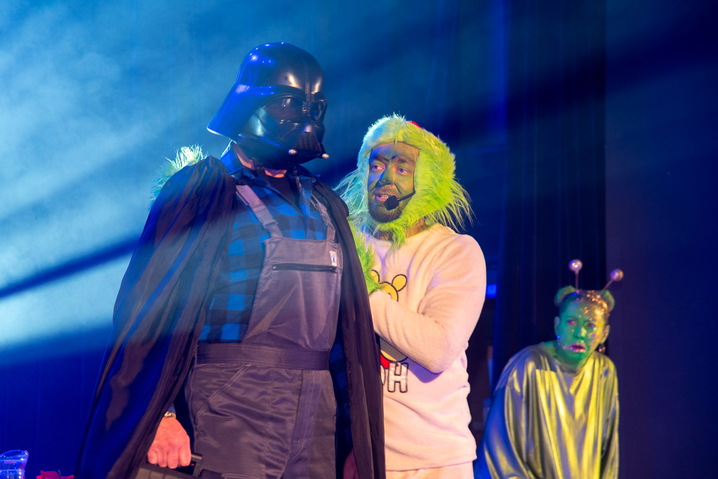 W spektaklu „Kosmiczne Mikołajki” udział wzięli: W roli Kena - Wojciech Dobrołowicz, Asystentka Grażynka – Edyta Małkiewicz, Maryla Rodowicz – Bożena Mazowiecka, Tik Tokerka – Magdalena Kutz, Kosmici – Dorota Bojakowska, Marta Bodziony, Łukasz Roszkowski, Elfy – Ewelina Gabara-Walczak, Monika Nawrot, Jolanta Medycka, Janusz Vader – Krystian Bajsarowicz, Barbie – Monika Nawrot, Narrator Aniołek – Mariola Danielewska, Grinch – Marcin Woroniecki, Święty Mikołaj – Albert Bystrykowski. Scenariusz i reżyseria: Marcin Woroniecki.