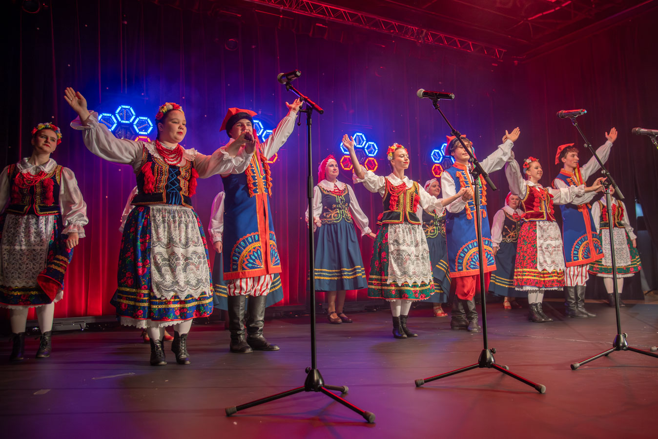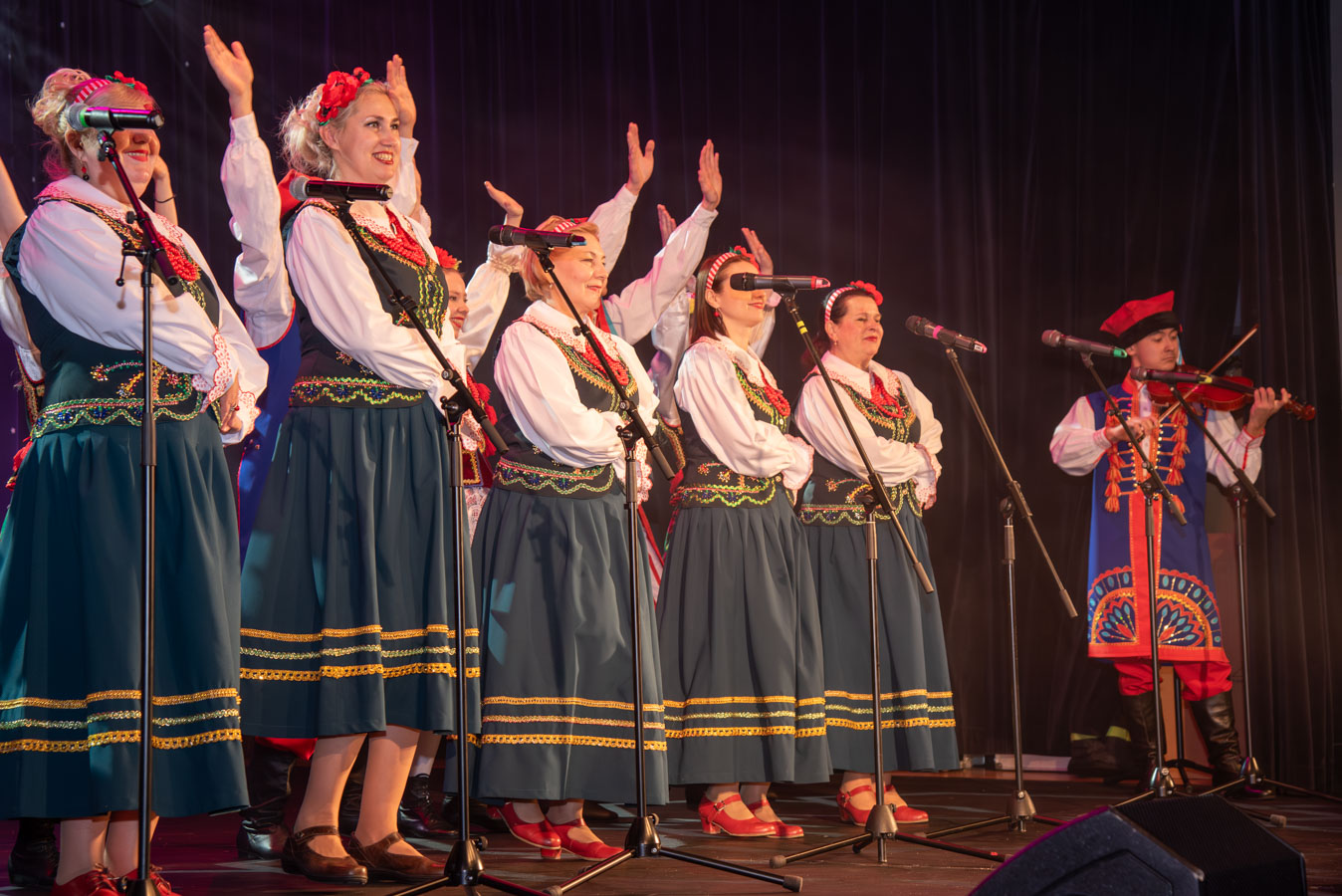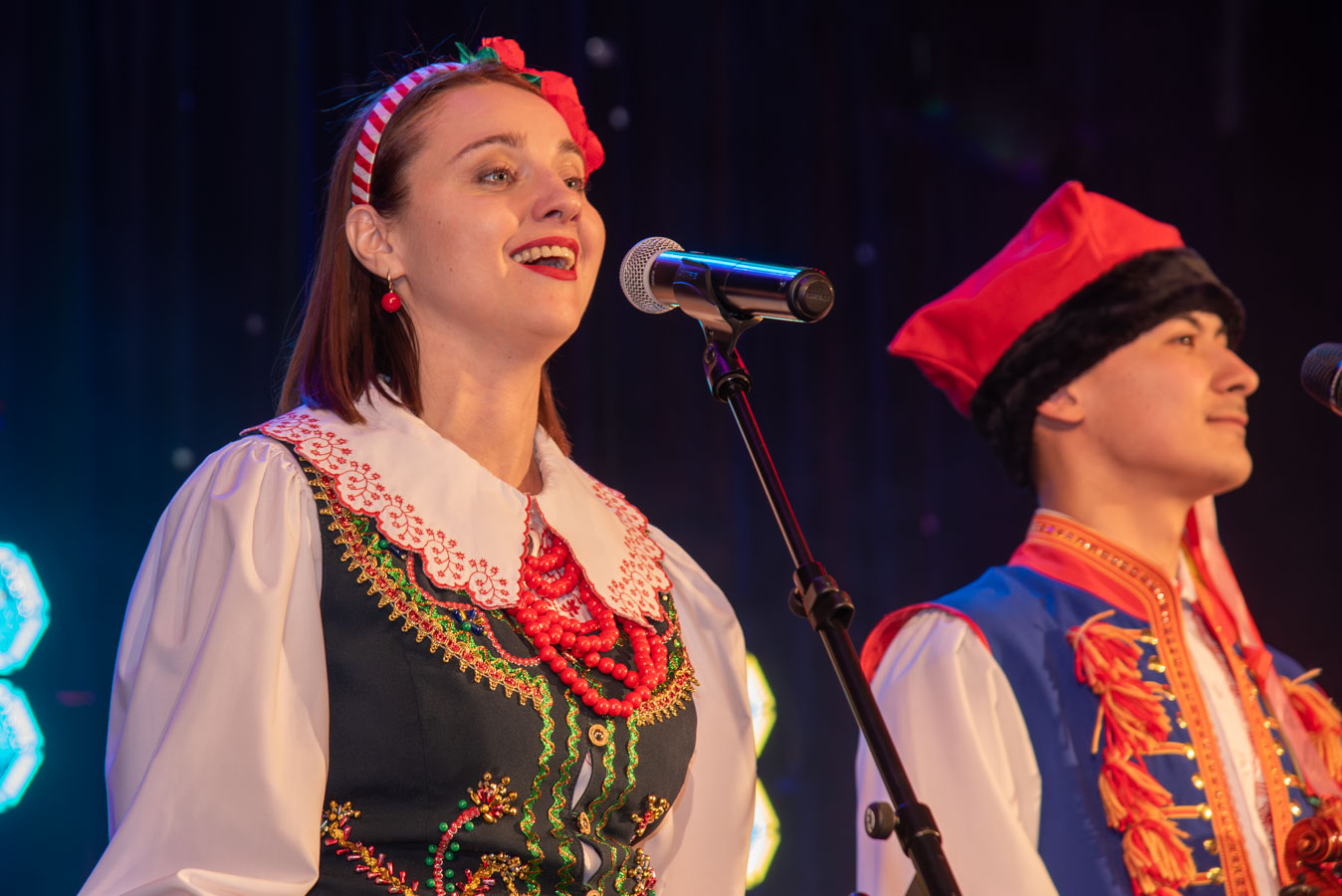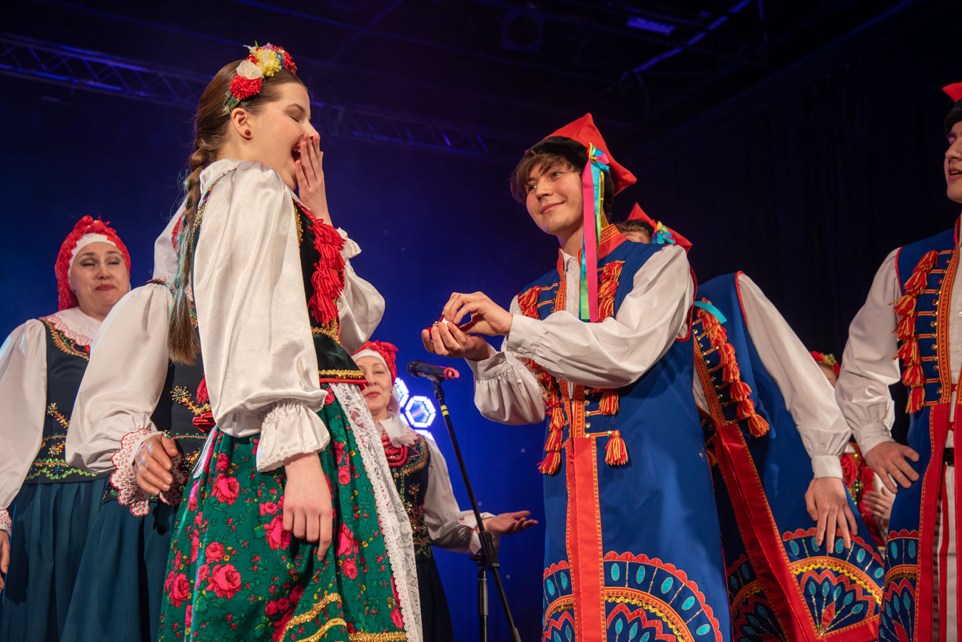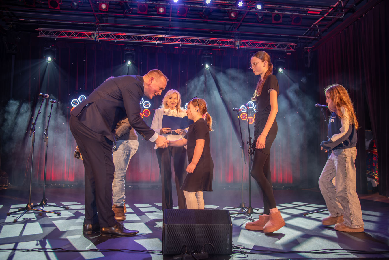 Koncert zespołów artystycznych „Narcyz” i „Syreny” z Pawłodaru w Kazachstanie otworzył burmistrz Wojciech Dobrołowicz, który zwrócił uwagę na symboliczny wymiar wydarzenia – obecność artystów, którzy pokonali ponad cztery tysiące kilometrów, by zaprezentować polską kulturę i język przed publicznością w Polsce. Podkreślił, że polska tożsamość nie ogranicza się do granic państwa, a „polskie serce bije na całym świecie”, również w Kazachstanie, gdzie od pokoleń żyją potomkowie deportowanych Polaków. Koncertowi towarzyszyły trzy projekcje filmowe przybliżające życie, historię i działalność Polonii w Pawłodarze. Zaprezentowano m.in. funkcjonowanie Szkoły Odrodzenia Narodowego im. Kanata Dorżumana, naukę języka polskiego, pielęgnowanie tradycji, działalność wolontariacką na rzecz miejsc pamięci oraz aktywność zespołów artystycznych „Narcyz” i „Syreny”, które od lat reprezentują Polaków z Kazachstanu w kraju i za granicą, m.in. podczas wystawy EXPO w Astanie. Filmy ukazały także współczesne oblicze Polonii jako wspólnoty międzypokoleniowej, aktywnej społecznie i kulturowo. W programie wydarzenia znalazł się również czas na podziękowania dla młodzieży oraz szkół z terenu gminy Bogatynia, zaangażowanych w akcję „Mogiły Pradziada Ocal od Zapomnienia”. Burmistrz podkreślił rolę wolontariatu młodego pokolenia, które aktywnie uczestniczy w zbiórkach darów oraz wyjazdach porządkowych na cmentarze kresowe. Prezes Fundacji Studio Wschód Grażyna Orłowska-Sondej zaznaczyła, że w skali Dolnego Śląska w akcję włączyło się tysiące uczniów i studentów, a w rekordowych latach ratowano dziesiątki nekropolii na terenach dawnej Rzeczypospolitej. Ks. Łukasz Chłopek, posługujący w Pawłodarze, przybliżył dramatyczną historię deportacji Polaków do Kazachstanu rozpoczętych w 1936 roku. Wskazywał na doświadczenie wieloletniej obcości zarówno na zesłaniu, jak i po ewentualnym powrocie do Polski oraz na rolę pamięci, wiary i kultury w zachowaniu tożsamości narodowej. Podkreślił znaczenie solidarności z Polakami żyjącymi poza granicami kraju oraz potrzebę nieustannego podtrzymywania więzi. Po blisko dwugodzinnym koncercie publiczność nagrodziła artystów owacjami na stojąco. Wydarzenie charakteryzowało się wysokim poziomem artystycznym występów, dopracowaną choreografią, muzykalnością wykonawców oraz autentycznymi emocjami towarzyszącymi prezentowanym utworom. Podczas podziękowań burmistrz zwrócił również uwagę na działalność Fundacji Studio Wschód oraz znaczenie programu „Wschód”, emitowanego w Telewizji Polonia i poświęconego tematyce kresowej. Po koncercie prowadzona była zbiórka podpisów pod petycją w obronie programu, wskazując na jego rolę w dokumentowaniu losów Polaków na Wschodzie oraz integrowaniu Polonii na całym świecie.