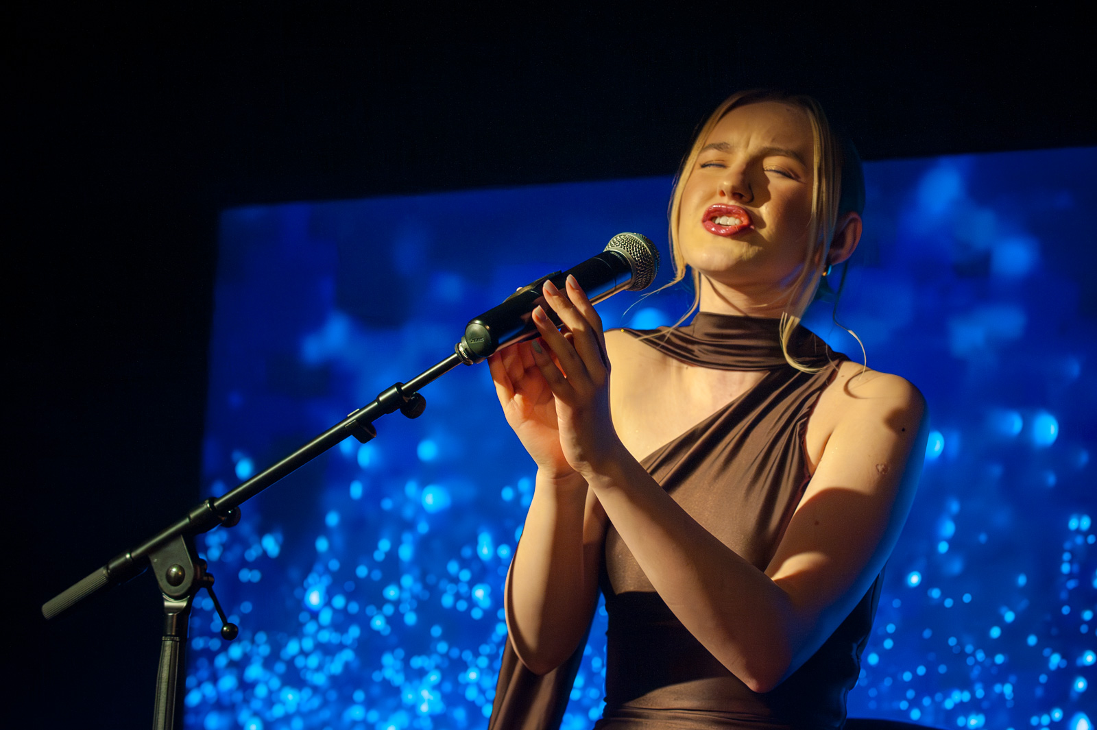 Dla takich koncertów istnieje kameralna scena w Bogatyńskim Ośrodku Kultury. Amelia Palacz, młoda lokalna artystka ze Zgorzelca niesamowitym głosem zaczarowała wszystkich zgromadzonych słuchaczy zabierając ich do swojego pięknego świata pełnego liryzmu, delikatności i intymności. Podczas godzinnego koncertu usłyszeliśmy utwory takie jak „Mamo, tyś płakała”, „Kolorowy wiatr”, „Wilcza zamieć”, „Voilà” jak i autorską piosenkę „Glow up”. W swoim port folio Amelia ma już duże występy ze Zgorzelecką Orkiestrą Mandolinistów, gdzie ostatnio miała okazję zaśpiewać w duecie z Kasią Łaską utwór „Chcę uwierzyć snom” z Krainy Lodu 2. Mamy wielką nadzieję, że koncert w Kopalni Dźwięków będzie dla Amelki trampoliną, która wystrzeli ją w stronę największych polskich scen, bo naprawdę jest to nasz kolejny lokalny muzyczny diament, który trzeba pokazać światu. Artystce życzymy powodzenia i trzymamy kciuki za pomyślny rozwój kariery a Państwu dziękujemy za przybycie i zapraszamy na kolejne koncerty kameralne do Kopalni Dźwięków.