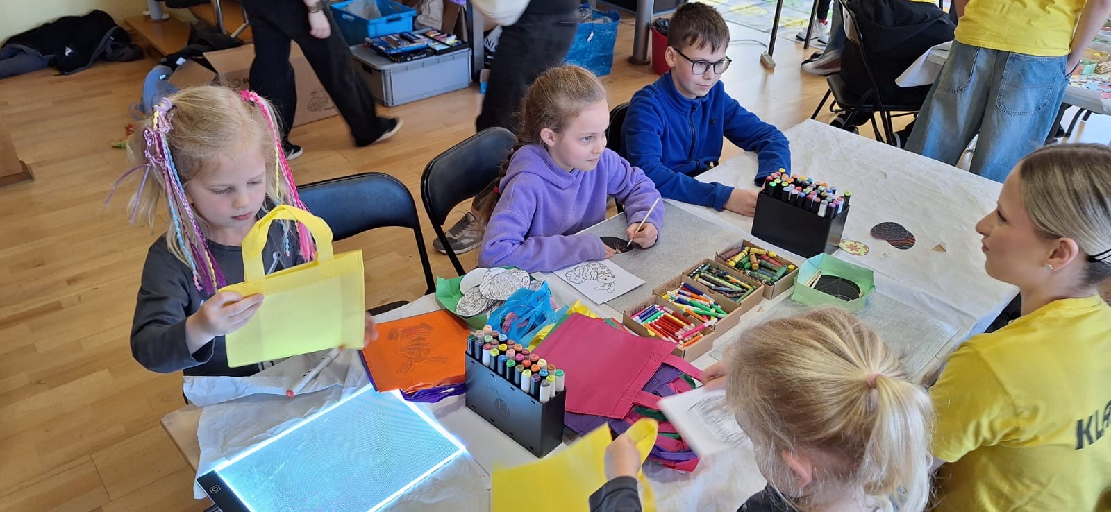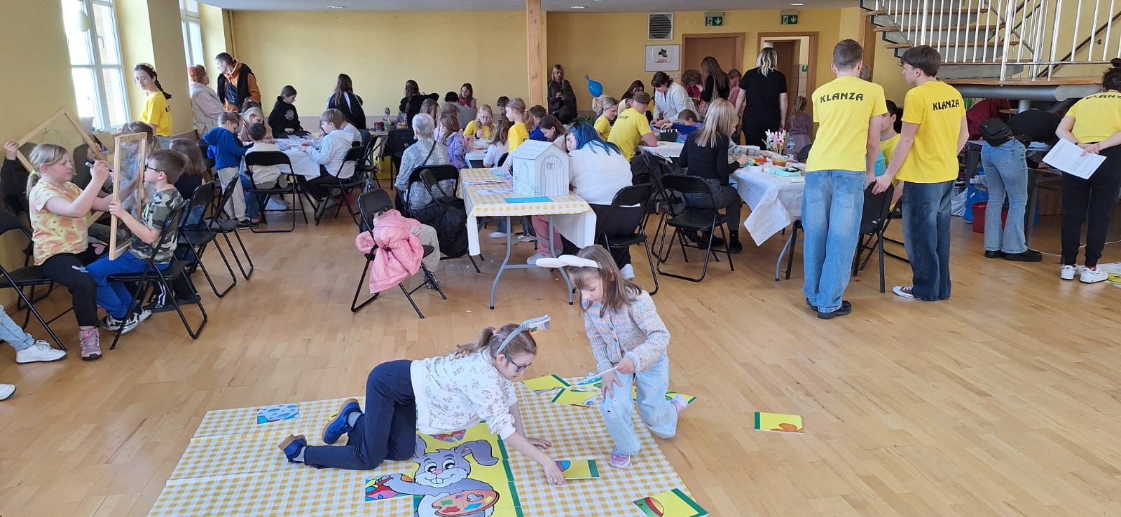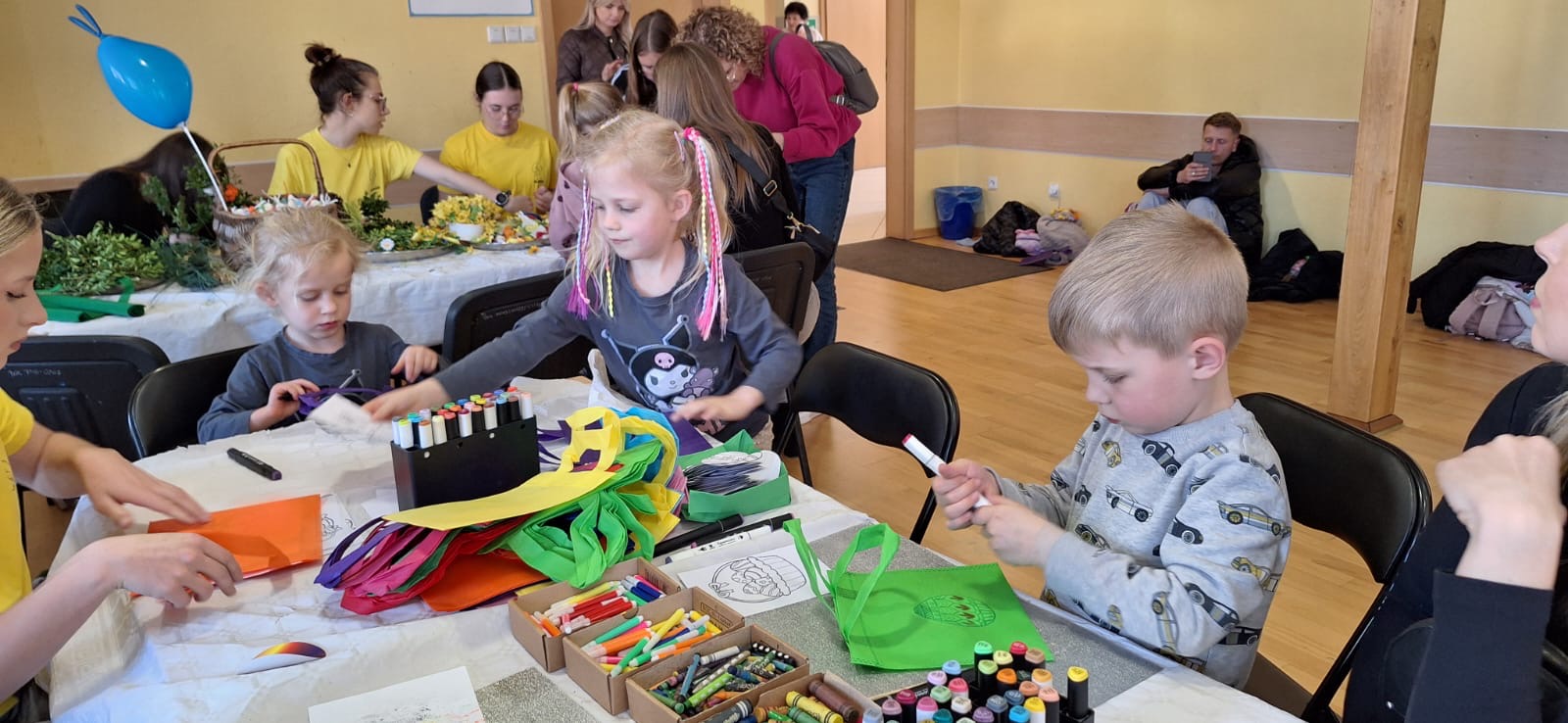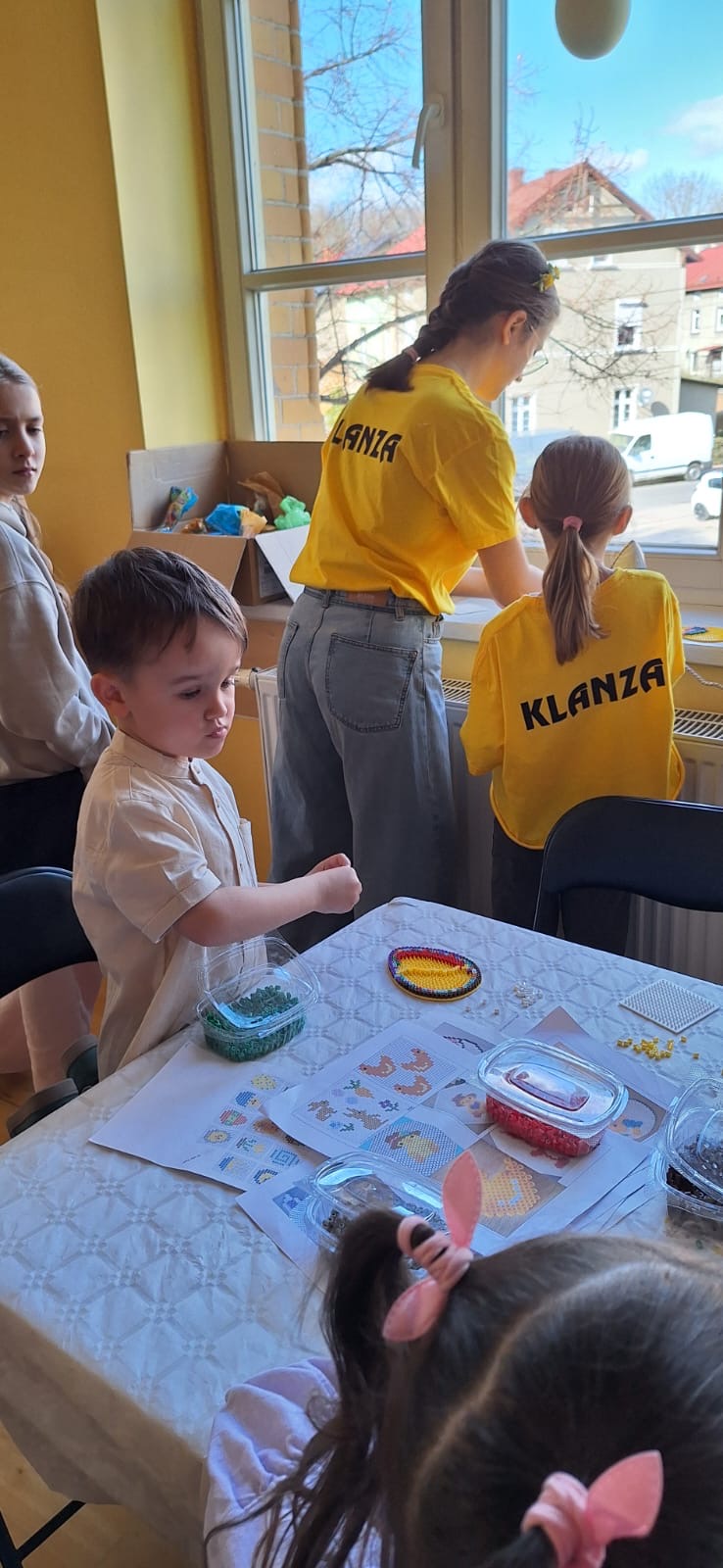 Jak już nakazuje wieloletnia tradycja na dolnym holu odbywał się kiermasz naszych lokalnych wystawców. Można było nabyć ozdoby świąteczne, stroiki, jajeczka, bransoletki, obrazy, robione na szydełku zajączki i kurczaczki, naturalne kosmetyki, pachnidła i pyszne ciasta. W sobotę i w niedzielę o godzinie 14.00 odbyły się darmowe seanse bajek dla dzieci oraz ich opiekunów w kinie KADR 3D. Następnie na sali tanecznej odbywały się świąteczne animacje i zabawy dla dzieci prowadzone przez Instruktorów BOK, bogatyńską Klanzę oraz Wioskę Czarów i Magii ze Spytkowa. W sali 103 na górnym holu gminne Szkoły Podstawowe rywalizowały w Międzyszkolnym Konkursie „Pozytywna Szkoła” – edycja 2026 - Konkurs na najpiękniejszą kartkę wielkanocną. Ostatecznie w wyniku weekendowego głosowania zwyciężyła kartka ze Szkoły Podstawowej nr 3 im. Kornela Makuszyńskiego w Bogatyni. Na zakończenie Kiermaszu i Warsztatów Wielkanocnych Burmistrz Miasta i Gminy Bogatynia Wojciech Dobrołowicz razem z Dyrektorem Ośrodka Pomocy Społecznej w Bogatyni Ewą Witczak uroczyście wręczyli zwycięzcom główną nagrodę konkursu, czyli voucher o wartości 5 000 zł na zakup sprzętu sportowego. Dziękujemy serdecznie wszystkim którzy wzięli udział w naszych 3 dniowych działaniach. Kolejne warsztaty i kiermasz w grudniu!