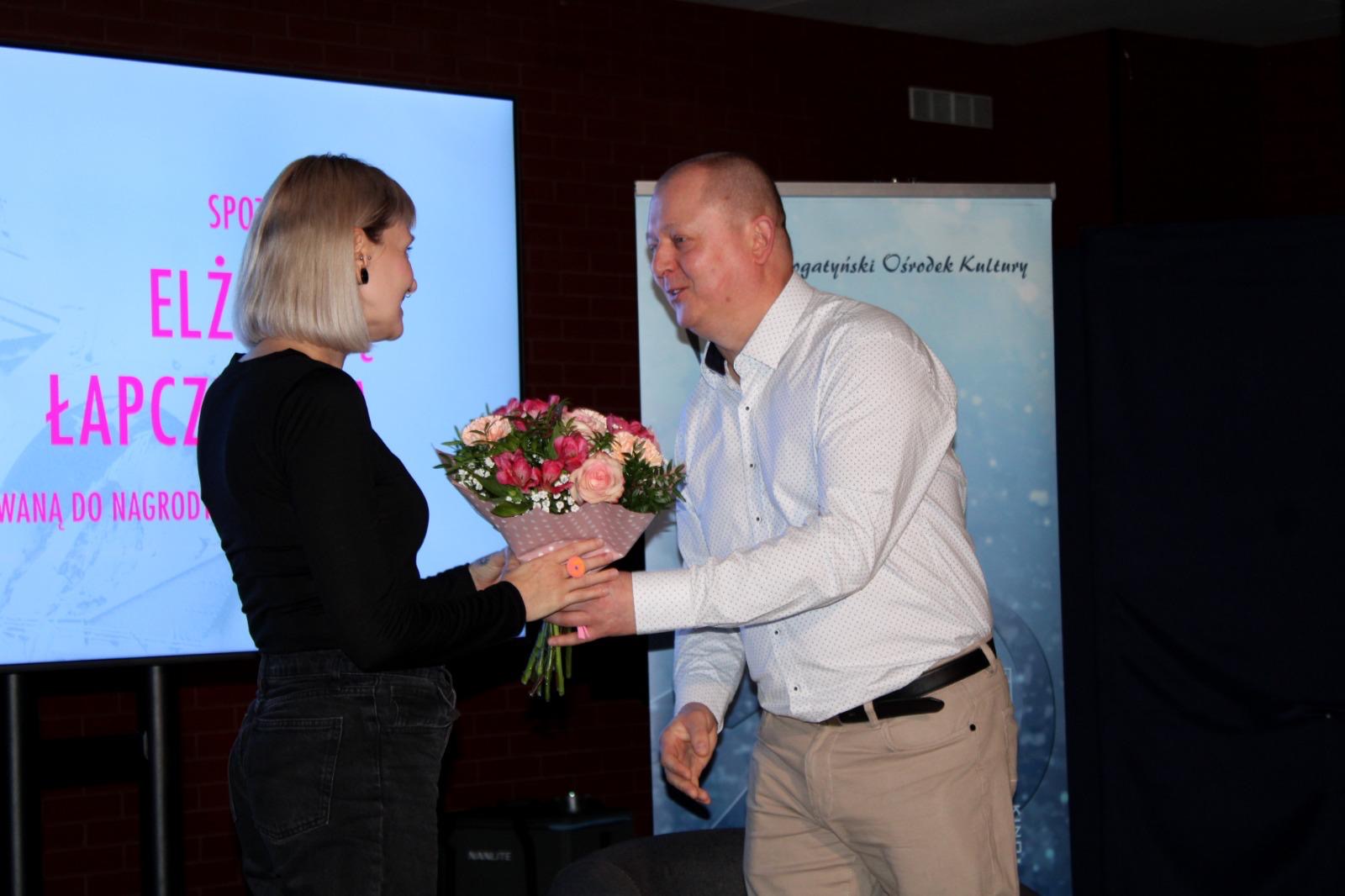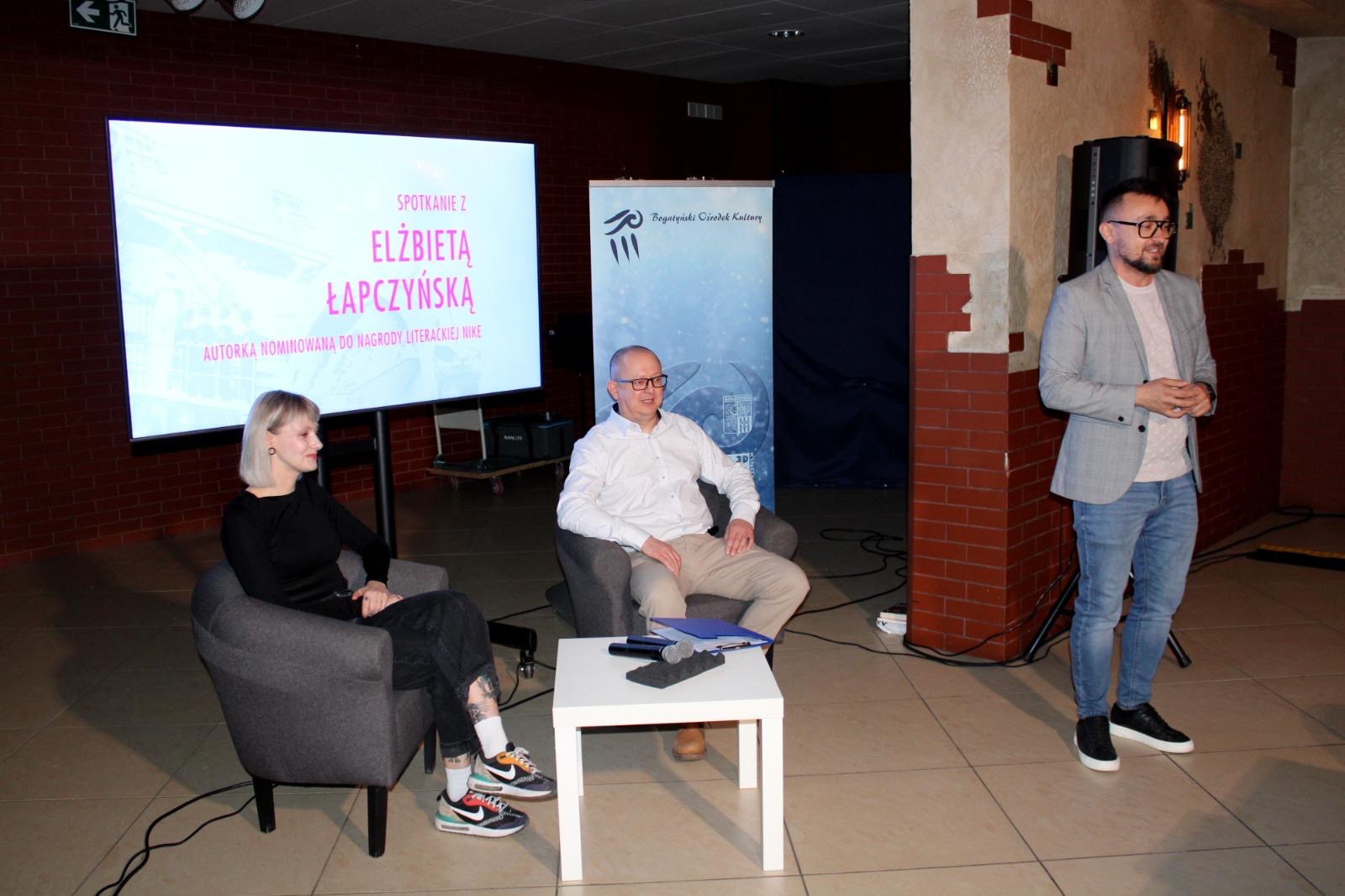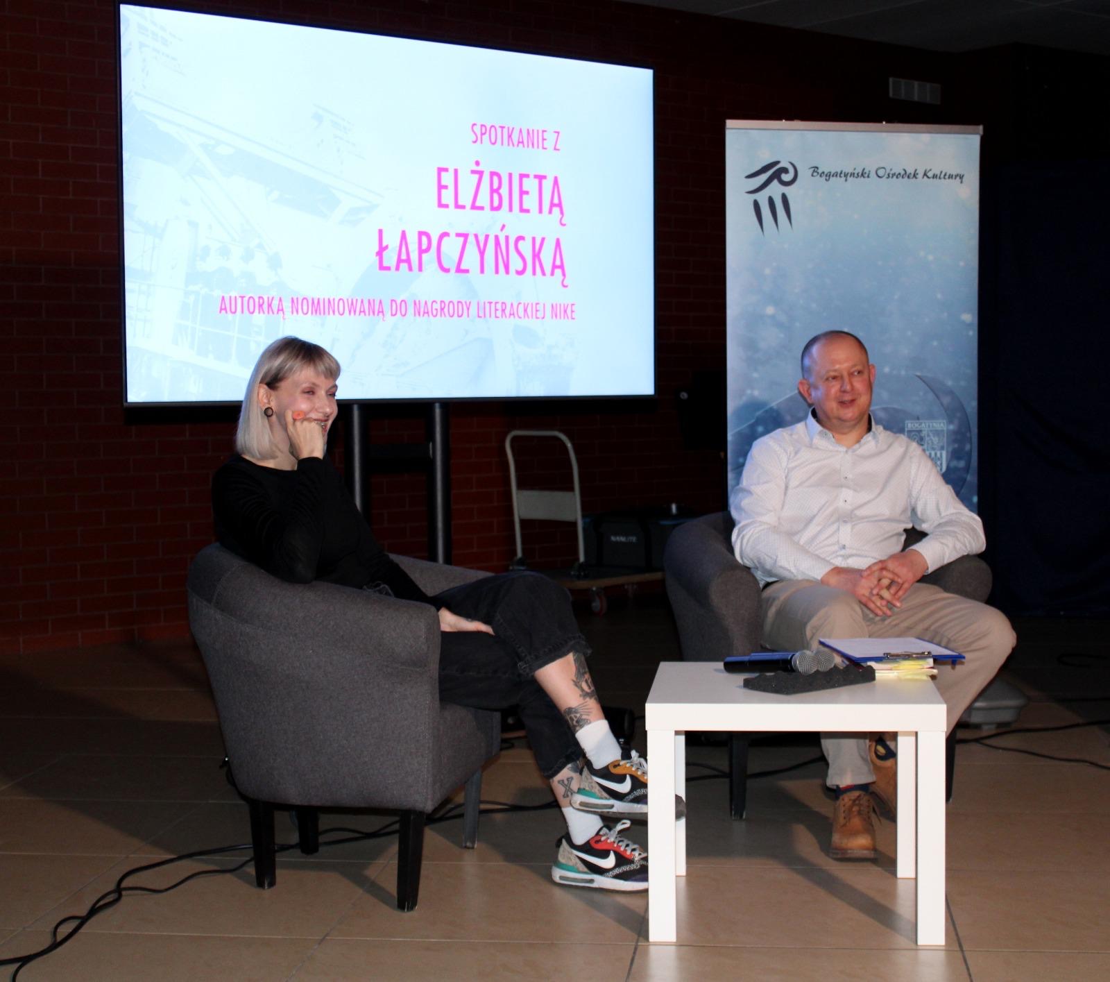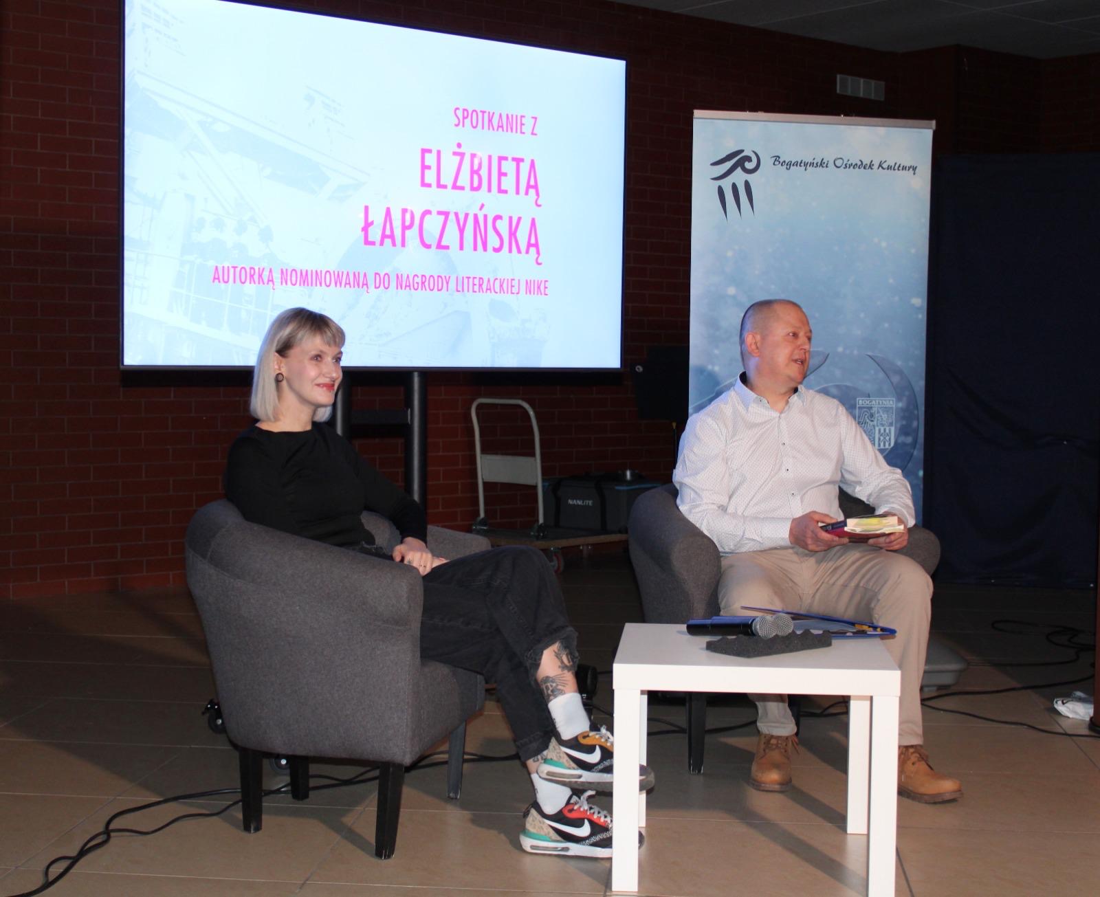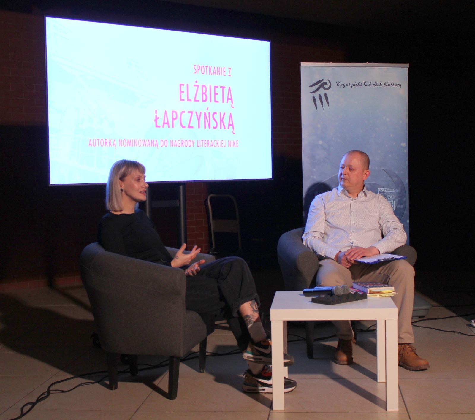 Elżbieta Łapczyńska to pochodząca z Krakowa pisarka, dramatopisarka. Autorka powieści „Mowa chleba” za którą została nagrodzona Nagrodą Literacką Gdynia, oraz „Bestiariusza nowohuckiego”, nagrodzonego Nagrodą Conrada i nominowanego do Nagrody Literackiej Nike. Pomysł na spotkanie wypłynął od mieszkańca Bogatyni, Pana Rafała Mazurkiewicza, który również wcielił się w rolę moderatora wydarzenia. Dziękujemy za liczne przybycie, wsłuchanie się w słowa autorki oraz późniejsze pytania. Pani Eli życzymy kolejnych sukcesów literackich a Państwa zapraszamy na kolejne spotkania autorskie do Bogatyńskiego Ośrodka Kultury.