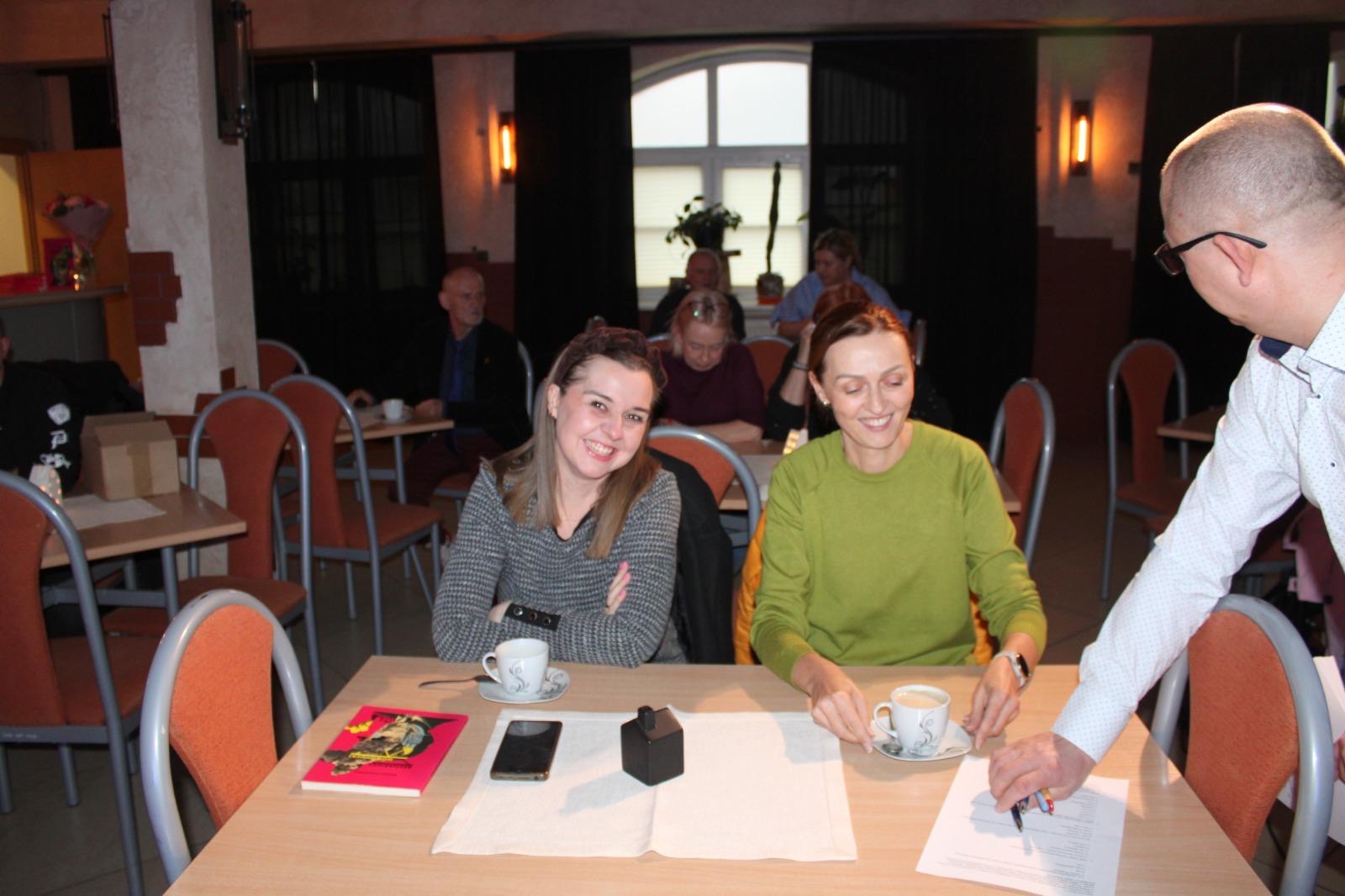 Elżbieta Łapczyńska to pochodząca z Krakowa pisarka, dramatopisarka. Autorka powieści „Mowa chleba” za którą została nagrodzona Nagrodą Literacką Gdynia, oraz „Bestiariusza nowohuckiego”, nagrodzonego Nagrodą Conrada i nominowanego do Nagrody Literackiej Nike. Pomysł na spotkanie wypłynął od mieszkańca Bogatyni, Pana Rafała Mazurkiewicza, który również wcielił się w rolę moderatora wydarzenia. Dziękujemy za liczne przybycie, wsłuchanie się w słowa autorki oraz późniejsze pytania. Pani Eli życzymy kolejnych sukcesów literackich a Państwa zapraszamy na kolejne spotkania autorskie do Bogatyńskiego Ośrodka Kultury.