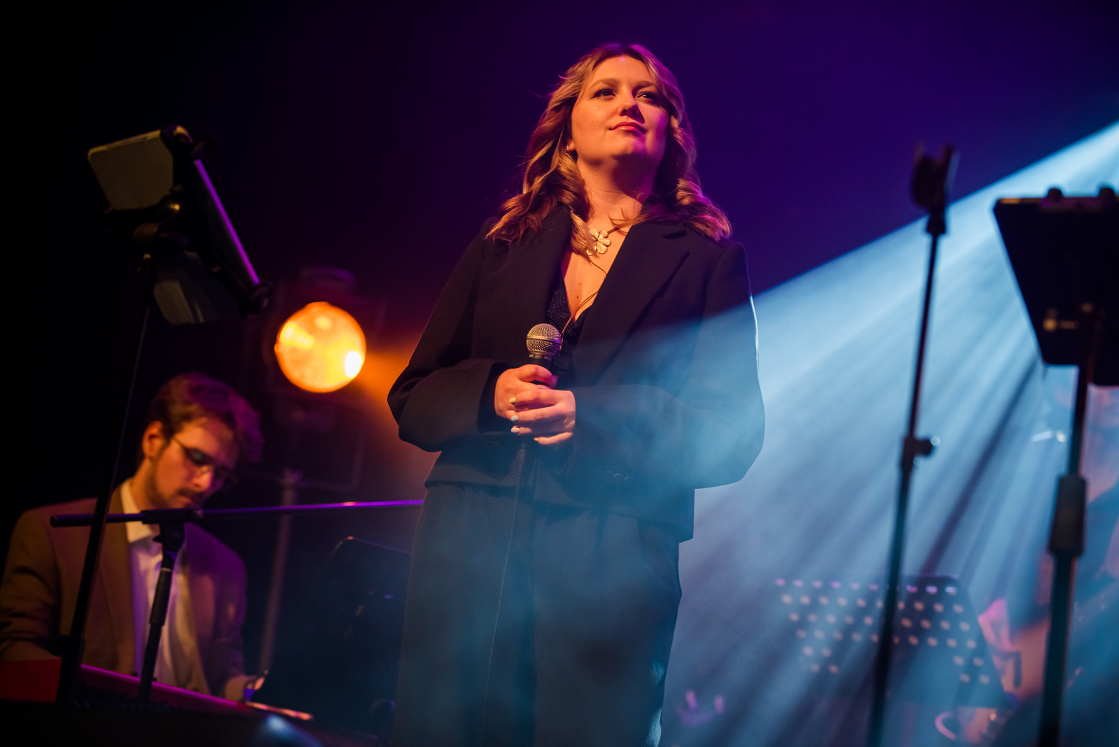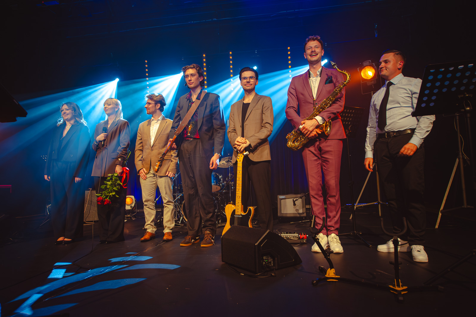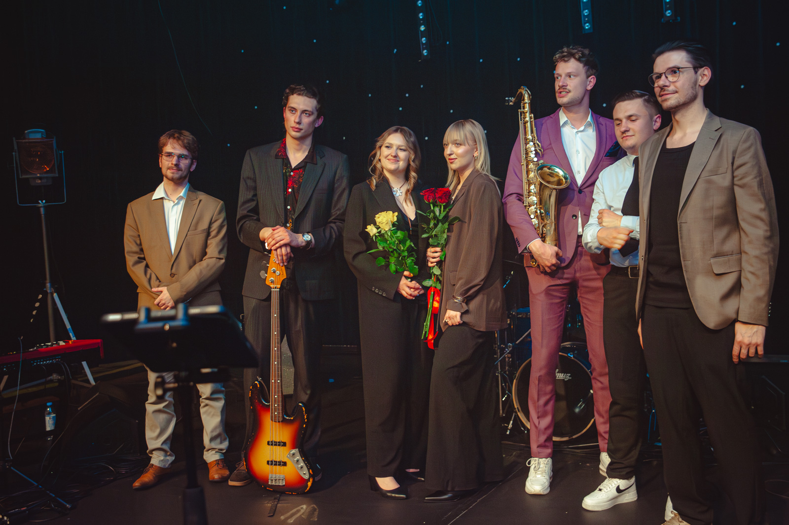 Jula to młoda, bardzo zdolna artystka z Bogatyni, obecnie studiująca wokal jazzowy na Instytucie Muzyki w Zielonej Górze. W 2023 roku zadebiutowała na małej scenie w Kopalni Dźwięków, a teraz powróciła z dużym jazzowym składem z koncertem Jazz Affair na salę widowiskową Bogatyńskiego Ośrodka Kultury. Usłyszeliśmy wspaniałe aranżacje standardów jazzowych oraz piosenki ulubionych artystów Juli. Była to prawdziwa jazzowo-soulowo-swingowa uczta, podczas której zgromadzona na sali publiczność chłonęła różne odmiany i kolory muzyki jazzowej. Z małej sceny BOK do dużej sali widowiskowej. Takie historie lubimy najbardziej! Serdecznie gratulujemy Juli i zespołowi życząc kolejnych super koncertów i sukcesów zarówno w życiu studenckim jak i artystycznym! Dziękujemy wszystkim za obecność i zapraszamy na kolejne koncerty do Bogatyńskiego Ośrodka Kultury.